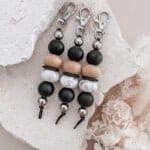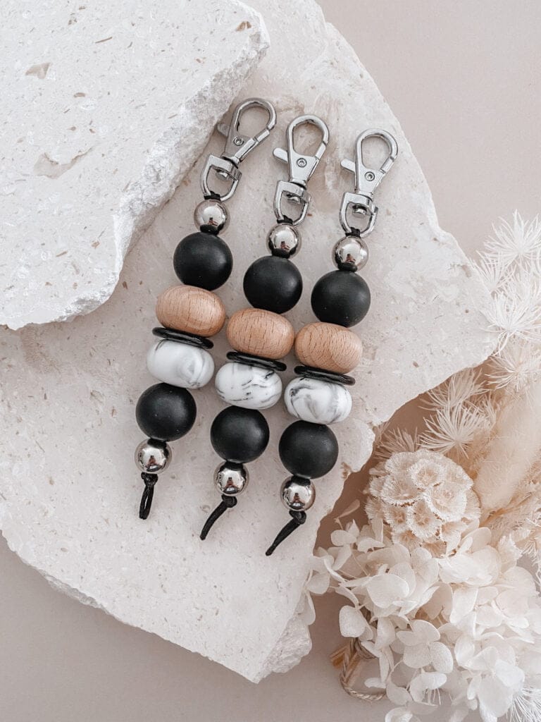 Keychain Clasps & Beads may tarnish over time/extensive use. Keep in a cool/dry environment to help prevent this.