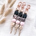 Beads: Pink Dalmatian, Pink, Black, Beechwood & Rose Gold