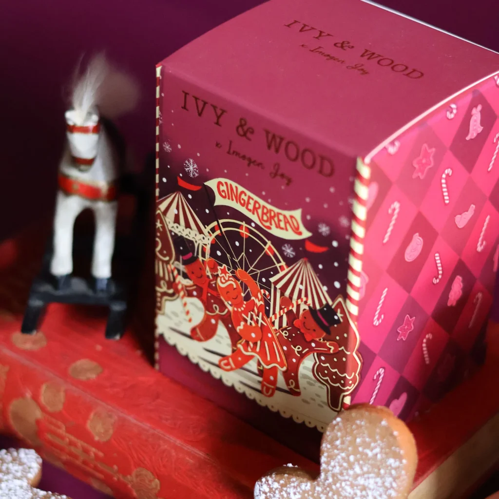 Created in collaboration with artist Imogen Joy, the Christmas Collection is adorned with whimsical, storybook-style illustrations that capture the nostalgia and magic of a classic Christmas. Each candle comes packaged in a beautifully illustrated box, making it a truly special gift.