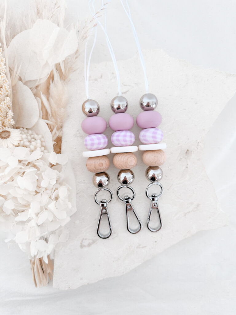 Keychain Clasps & Beads may tarnish over time/extensive use. Keep in a cool/dry environment to help prevent this.