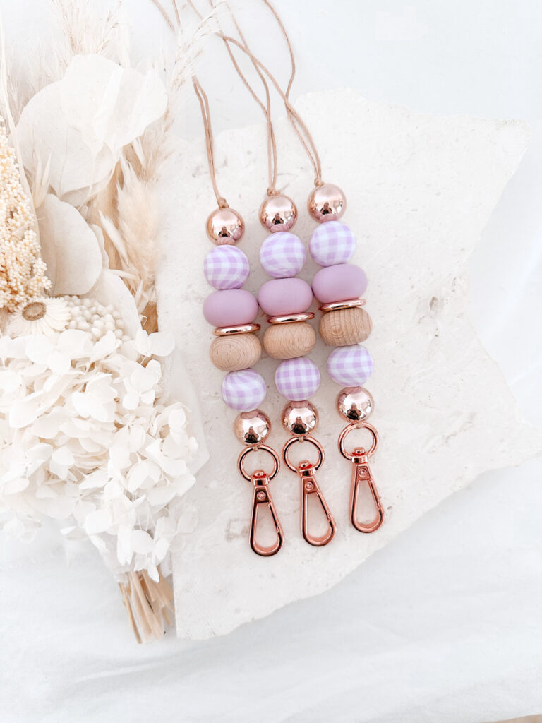 Beads: Lilac + White + Beechwood + Rose  Gold