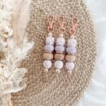 Keychain Clasps & Beads may tarnish over time/extensive use. Keep in a cool/dry environment to help prevent this.