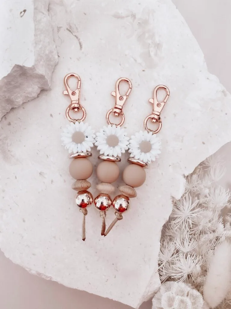 Keychain Clasps & Beads may tarnish over time/extensive use. Keep in a cool/dry environment to help prevent this.