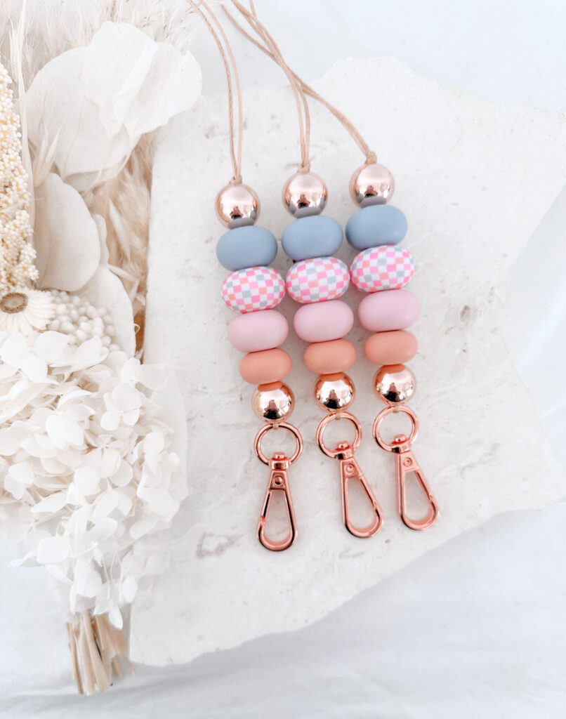 Beads: Dusty Blue + Blush Pink + Peach + Rose Gold