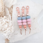 Keychain Clasps & Beads may tarnish over time/extensive use. Keep in a cool/dry environment to help prevent this.