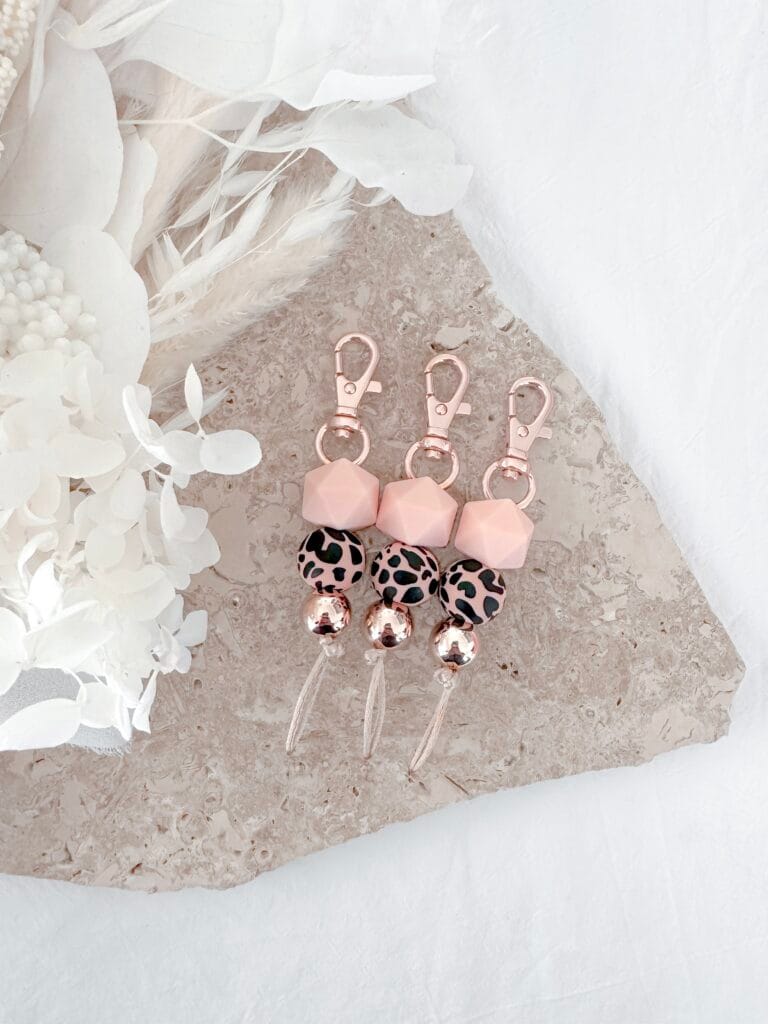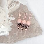 Keychain Clasps & Beads may tarnish over time/extensive use. Keep in a cool/dry environment to help prevent this.