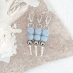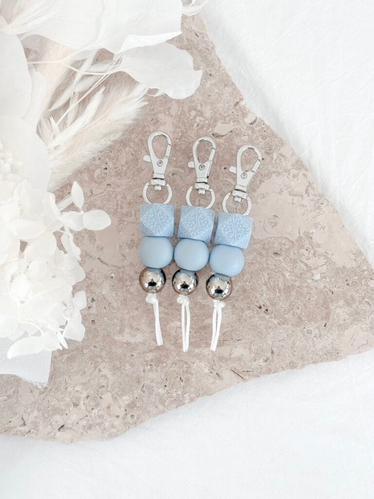 Keychain Clasps & Beads may tarnish over time/extensive use. Keep in a cool/dry environment to help prevent this.