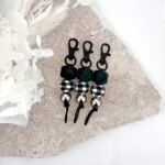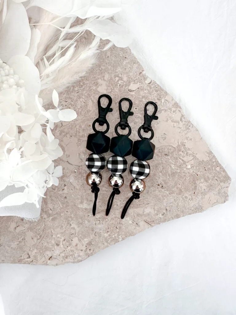 Keychain Clasps & Beads may tarnish over time/extensive use. Keep in a cool/dry environment to help prevent this.