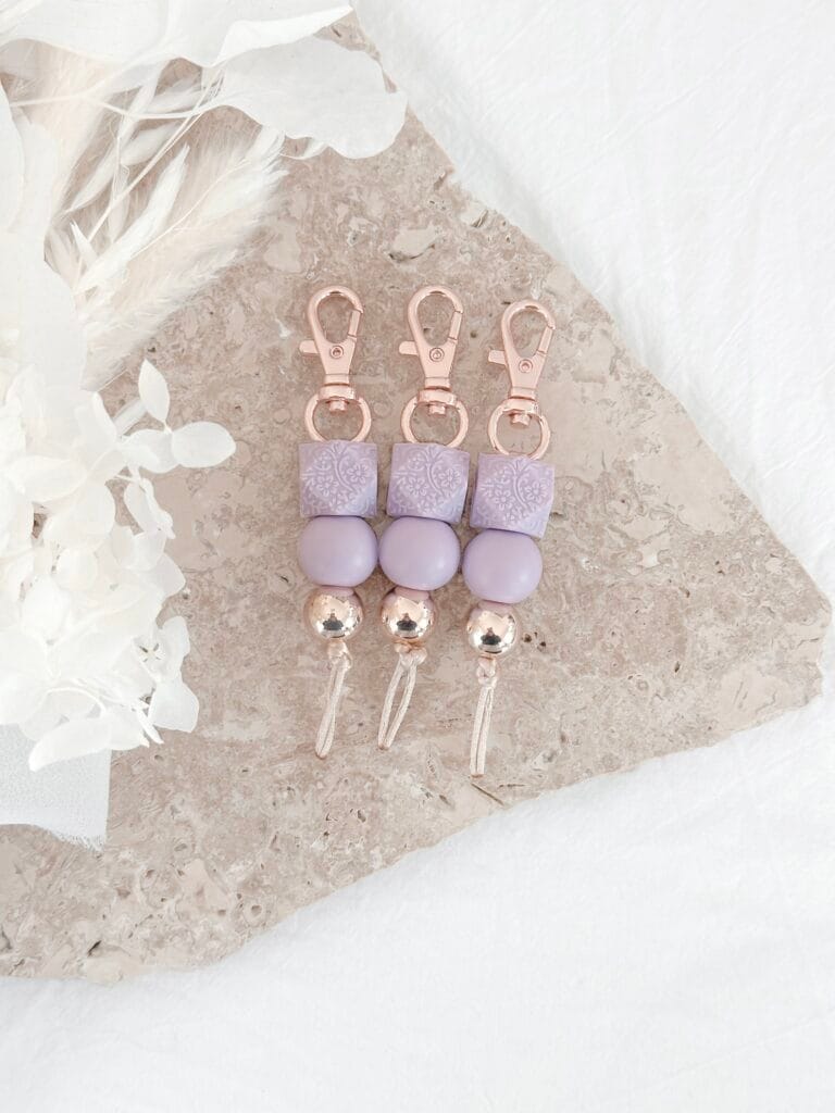 Keychain Clasps & Beads may tarnish over time/extensive use. Keep in a cool/dry environment to help prevent this.
