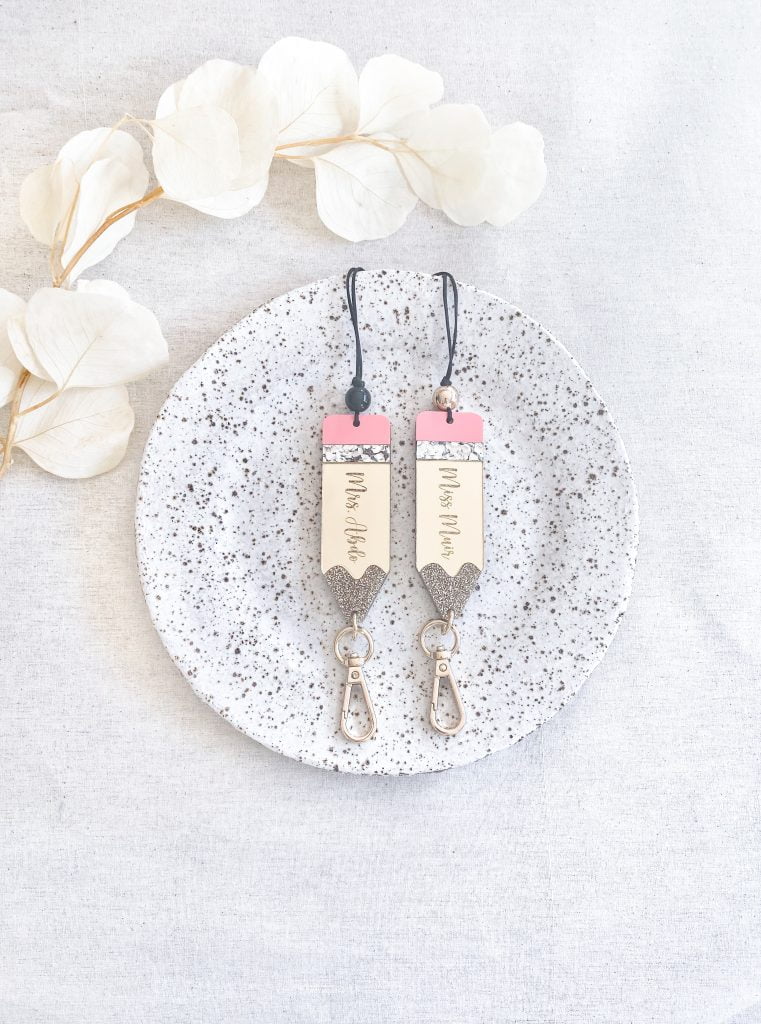 Listing is for ONE Lanyard – images show the design variations along with the front & back of the pencil