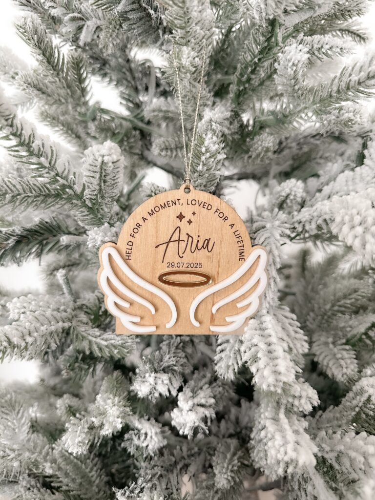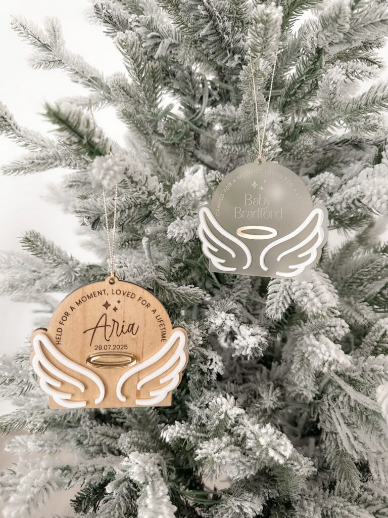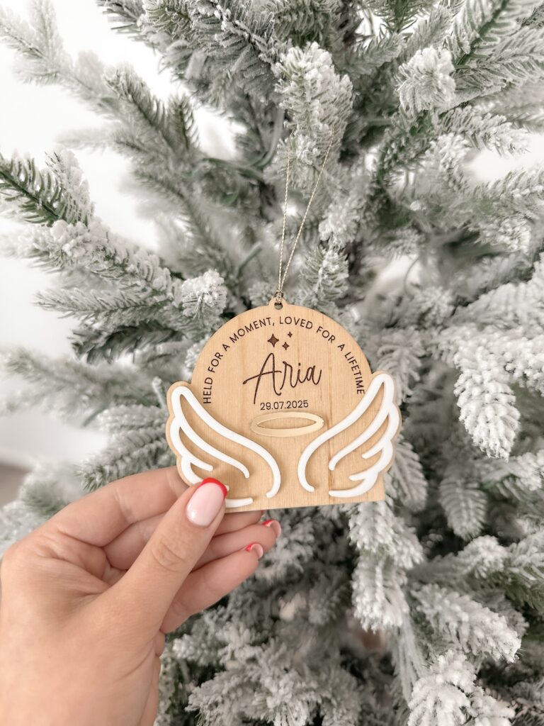 Whether it’s personalised with a name, date, or short message, it serves as a touching tribute to your baby and a beautiful addition to your Christmas tree.
