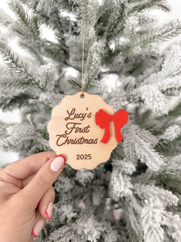 Add a special touch to your Christmas tree with this charming Personalised First Christmas Ornament | Scallop Bow