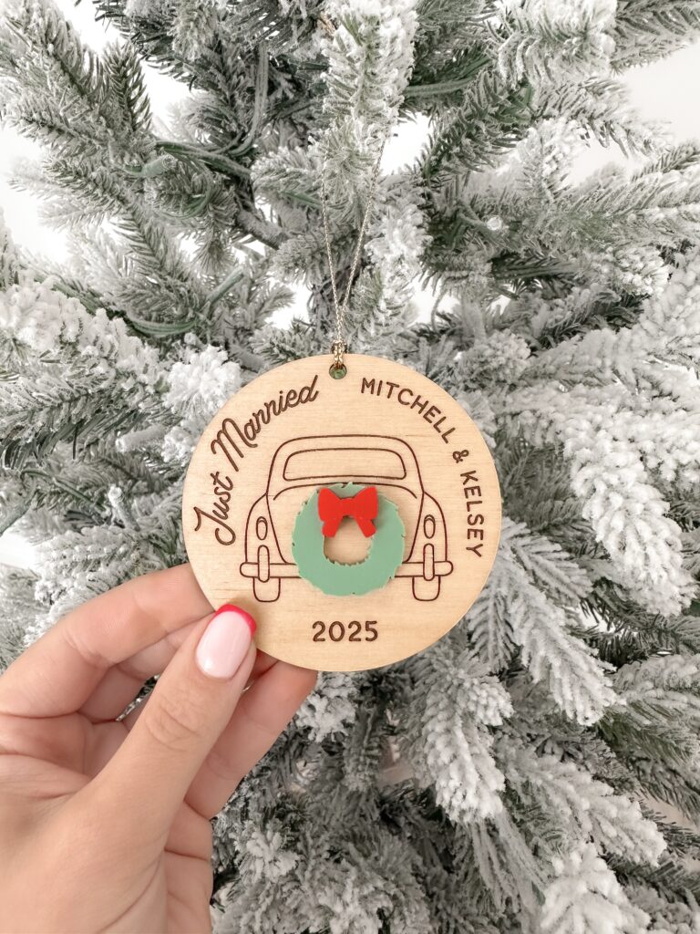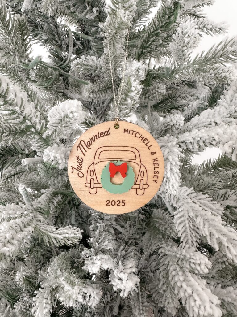 Add a special touch to your Christmas tree with this charming Personalised Just Married Ornament