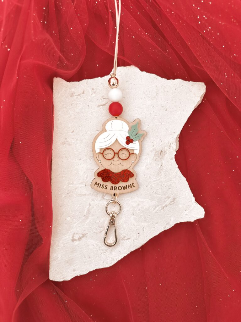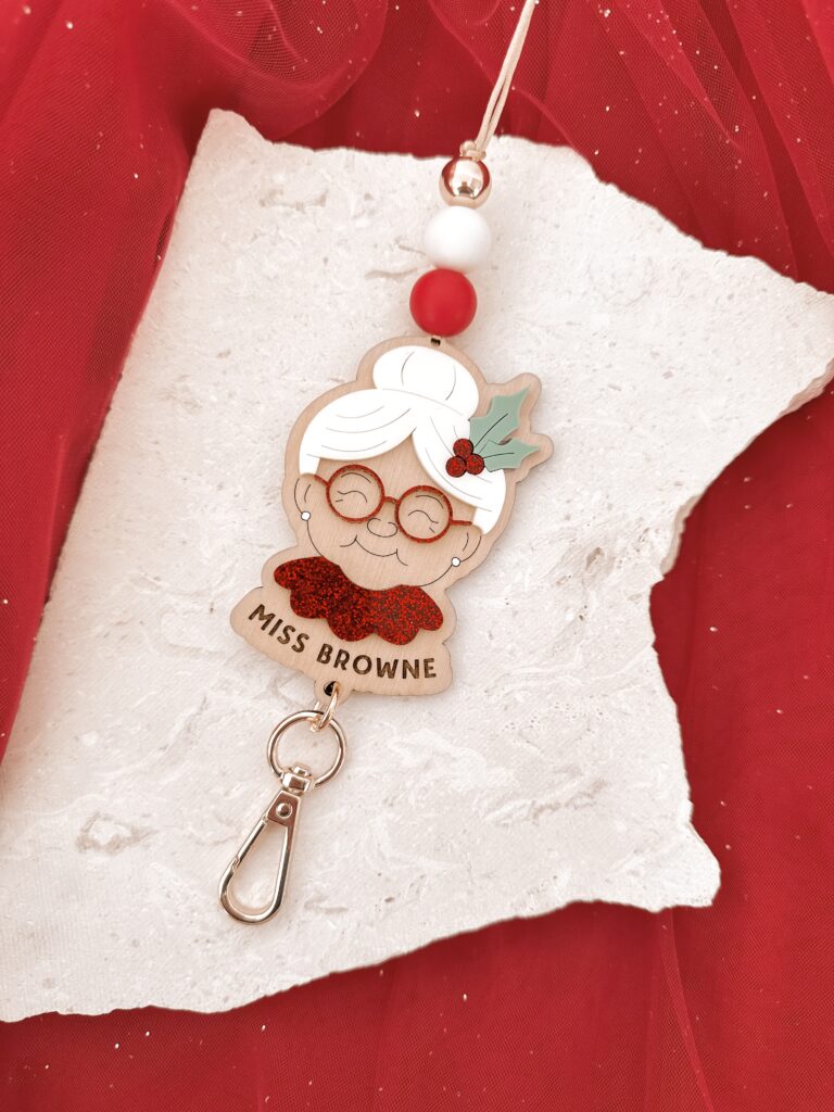 Spread holiday cheer wherever you go with our Personalised Mrs Claus Lanyard!