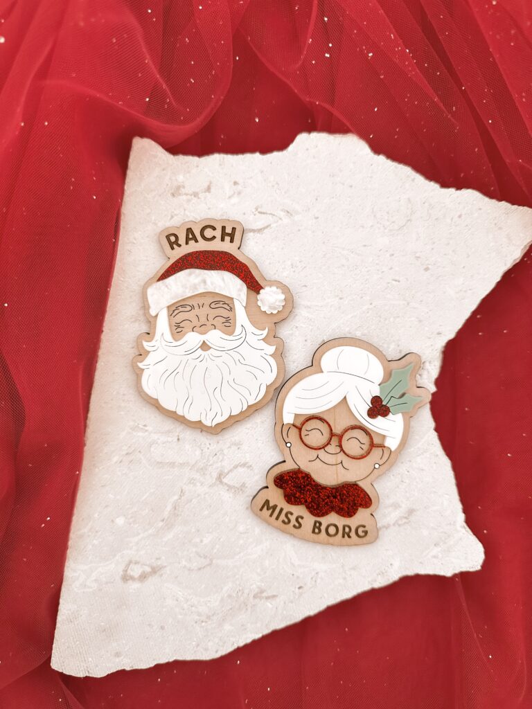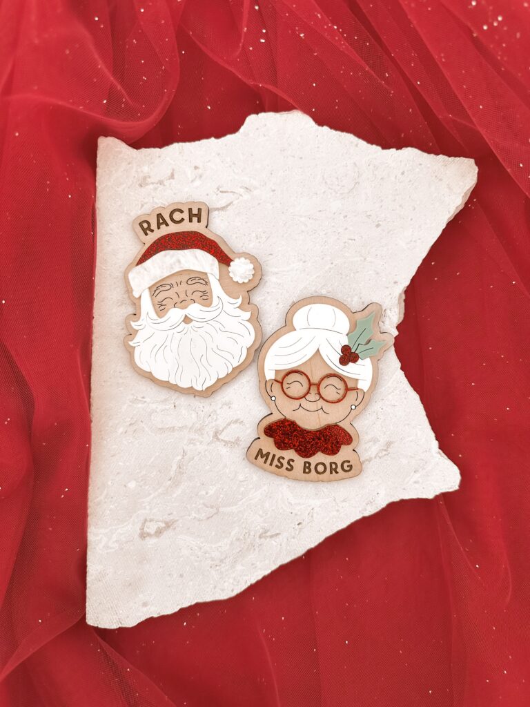 Add a touch of festive cheer to your holiday events with our Santa Claus & Mrs Claus Personalised Name Badge!