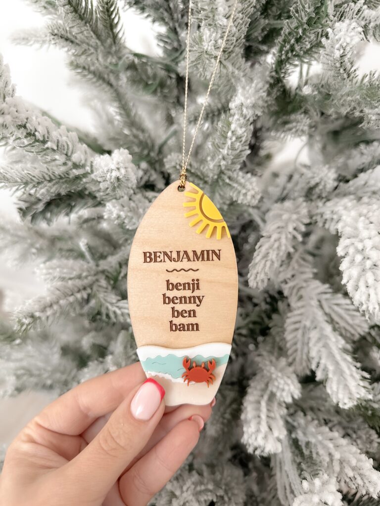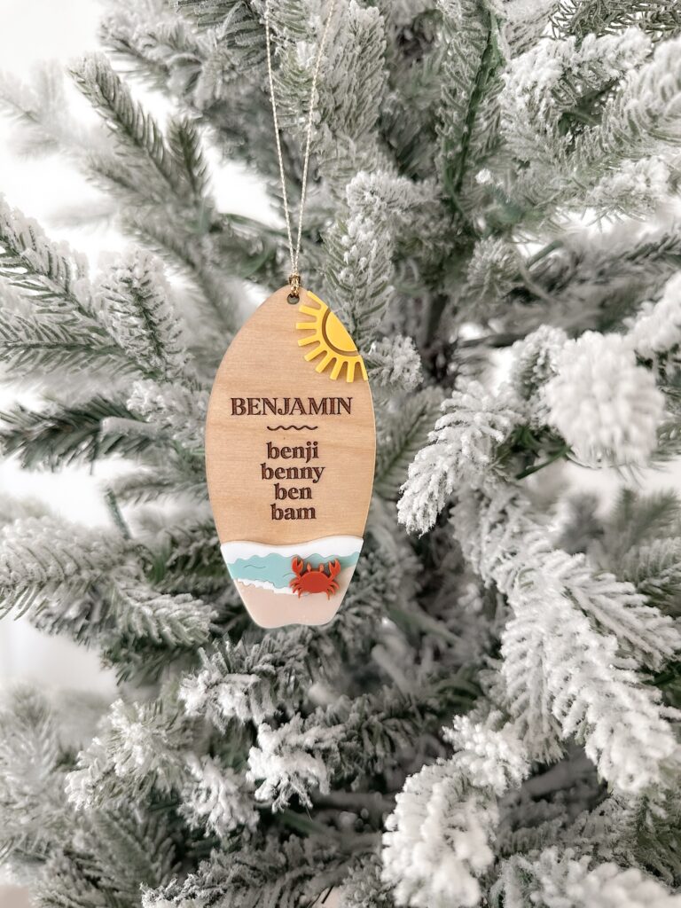 Add a special touch to your Christmas tree with this charming Personalised Surf Board Ornament