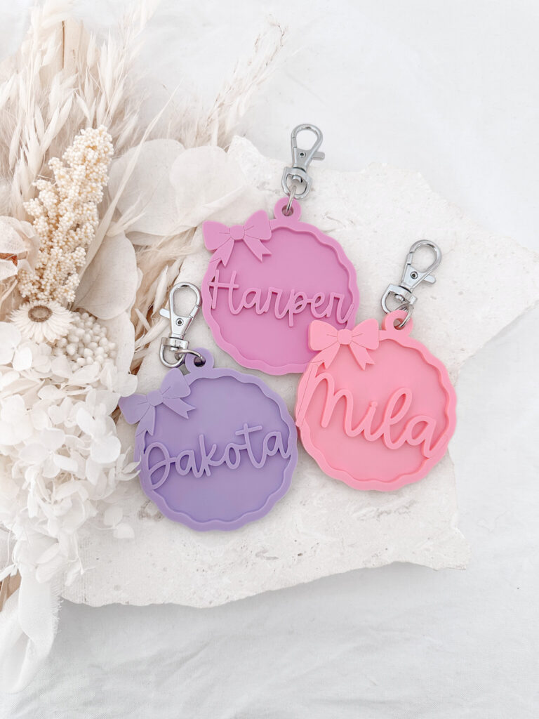 Add a sweet and stylish touch to backpacks, lunch bags, pencil cases, or gifts with these adorable custom name tag keychains!