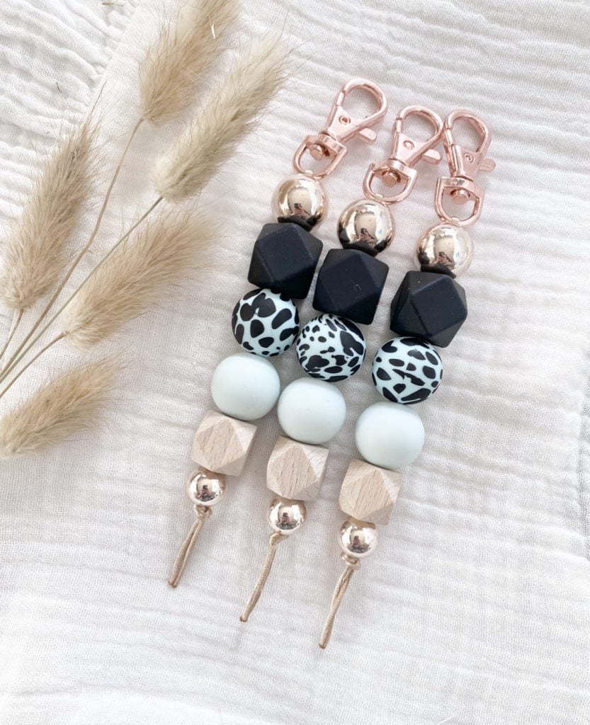 Beads: Seafoam Dalmatian, Seafoam, Black, Beechwood & Rose Gold