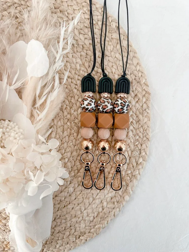 Beads: Beechwood + Black + Tan Leopard + Tan + Gold