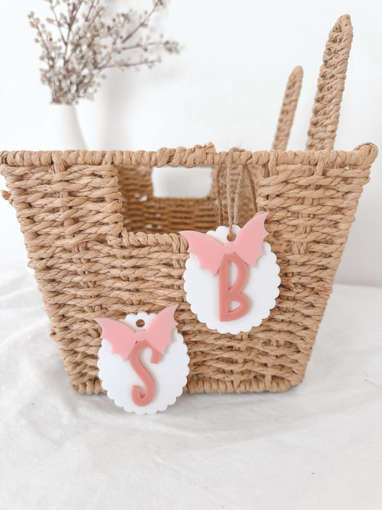 Featuring a scalloped edge, bat bow, and letter – these tags are the perfect finishing touch for your halloween baskets!