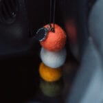 4 Unscented Felt Balls with branded charm and elastic string for easy hanging.