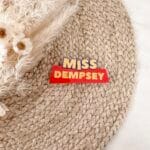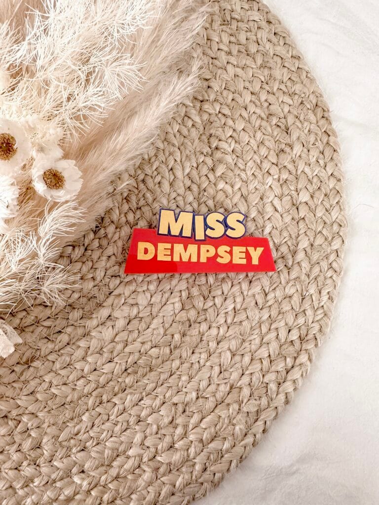 As this design is for two words (Eg. Miss Dempsey), if you opt to only put one name, it will be on the red bar & the blue part will be removed from your design.