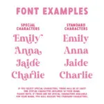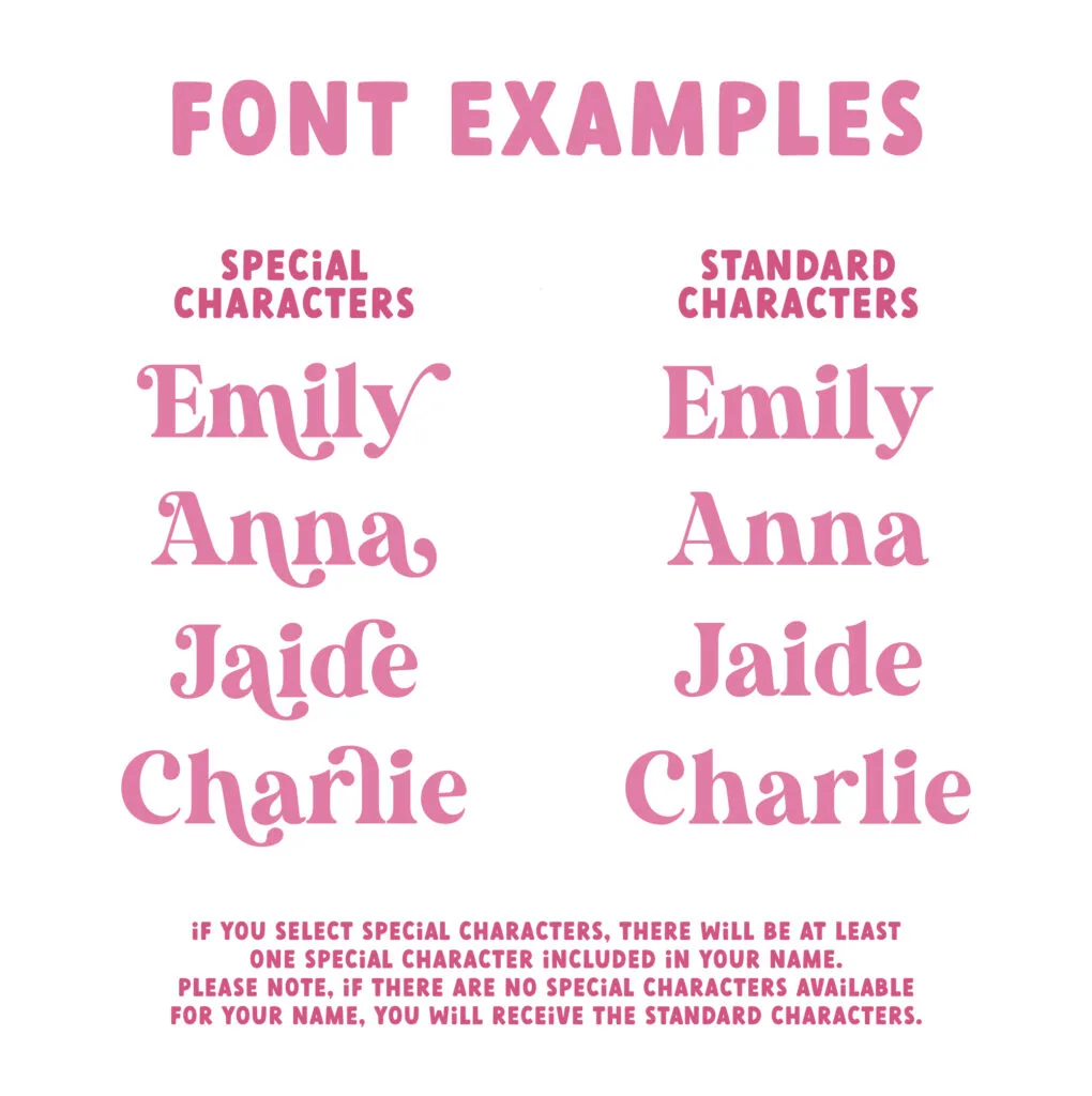 As stated in the product photos, if your name doesn’t have any special characters, it will be made using the standard characters.
